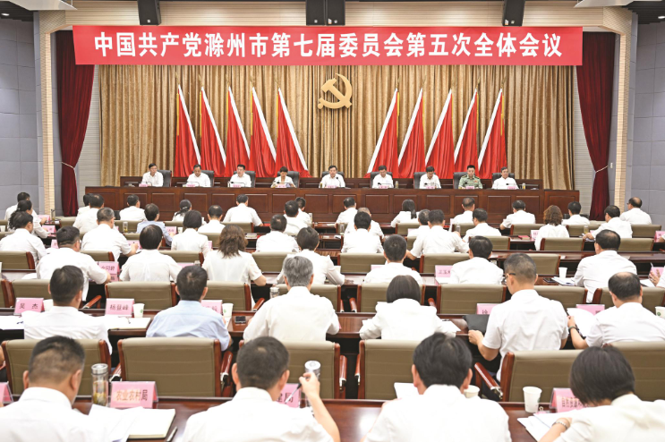 8月18日上午,中國共產(chǎn)黨滁州市第七屆委員會第五次全體會議在滁舉行。全會的主要任務(wù)是,堅持以習(xí)近平新時代中國特色社會主義思想為指導(dǎo),認真學(xué)習(xí)貫徹黨的二十大和二十屆一中、二中全會精神,深入貫徹中央政治局會議精神,全面落實省委十一屆五次全會部署,總結(jié)上半年工作,安排下半年任務(wù),進一步動員全市上下鼓足干勁、奮勇爭先,確保高質(zhì)量完成全年各項目標(biāo)任務(wù),加快建設(shè)現(xiàn)代化新滁州。