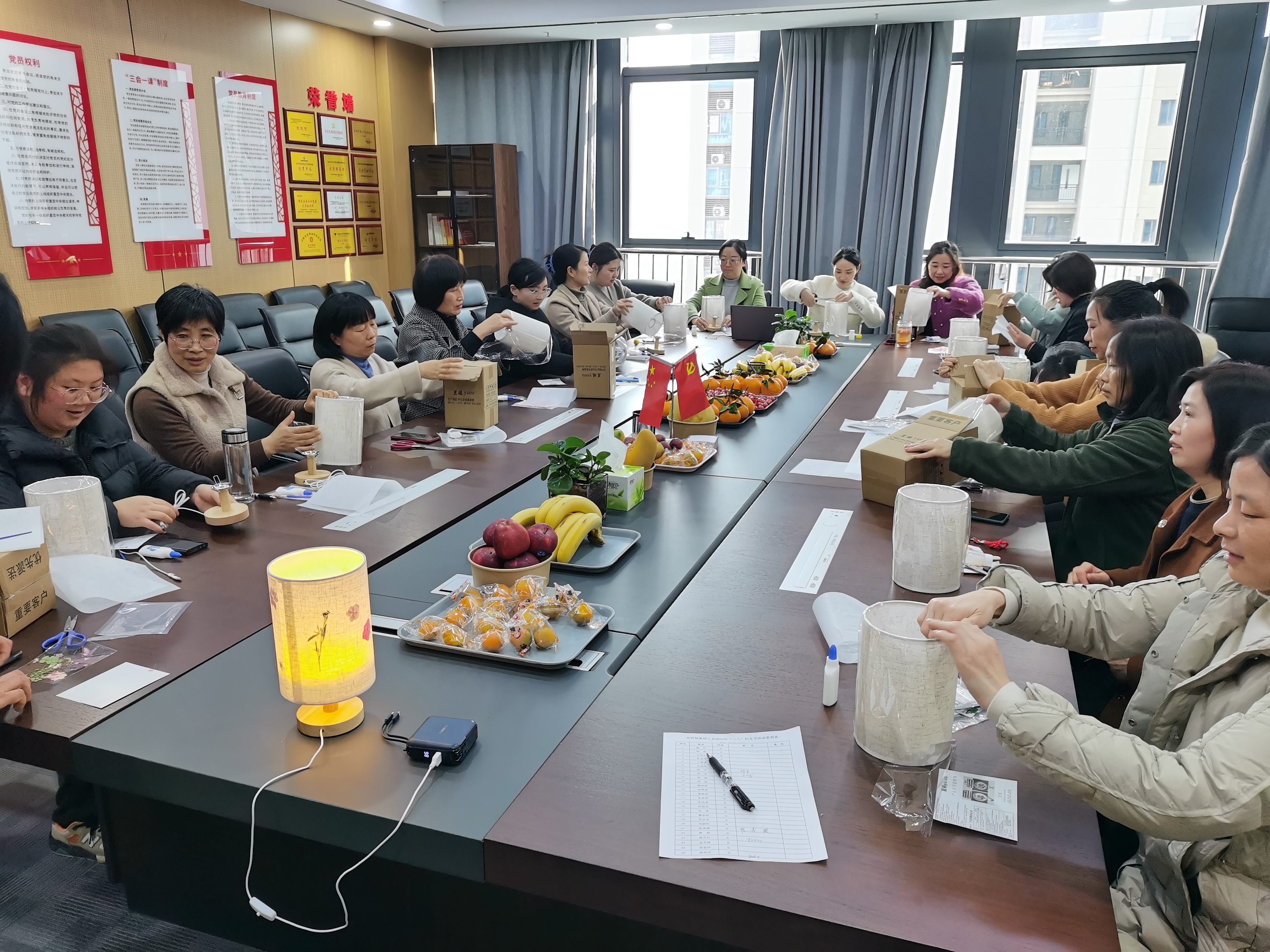 一是開展手工趣味活動。邀請工會女工委員代表為大家指導(dǎo)壓花臺燈的設(shè)計和制作過程,在選花、構(gòu)思、涂膠方面給予詳細指導(dǎo)。女職工們邊聽邊學邊動手,不斷討論、互相交流制作心得,分享自己的手工作品,并與作品合影留念?;顒蝇F(xiàn)場歡聲笑語不斷,其樂融融。