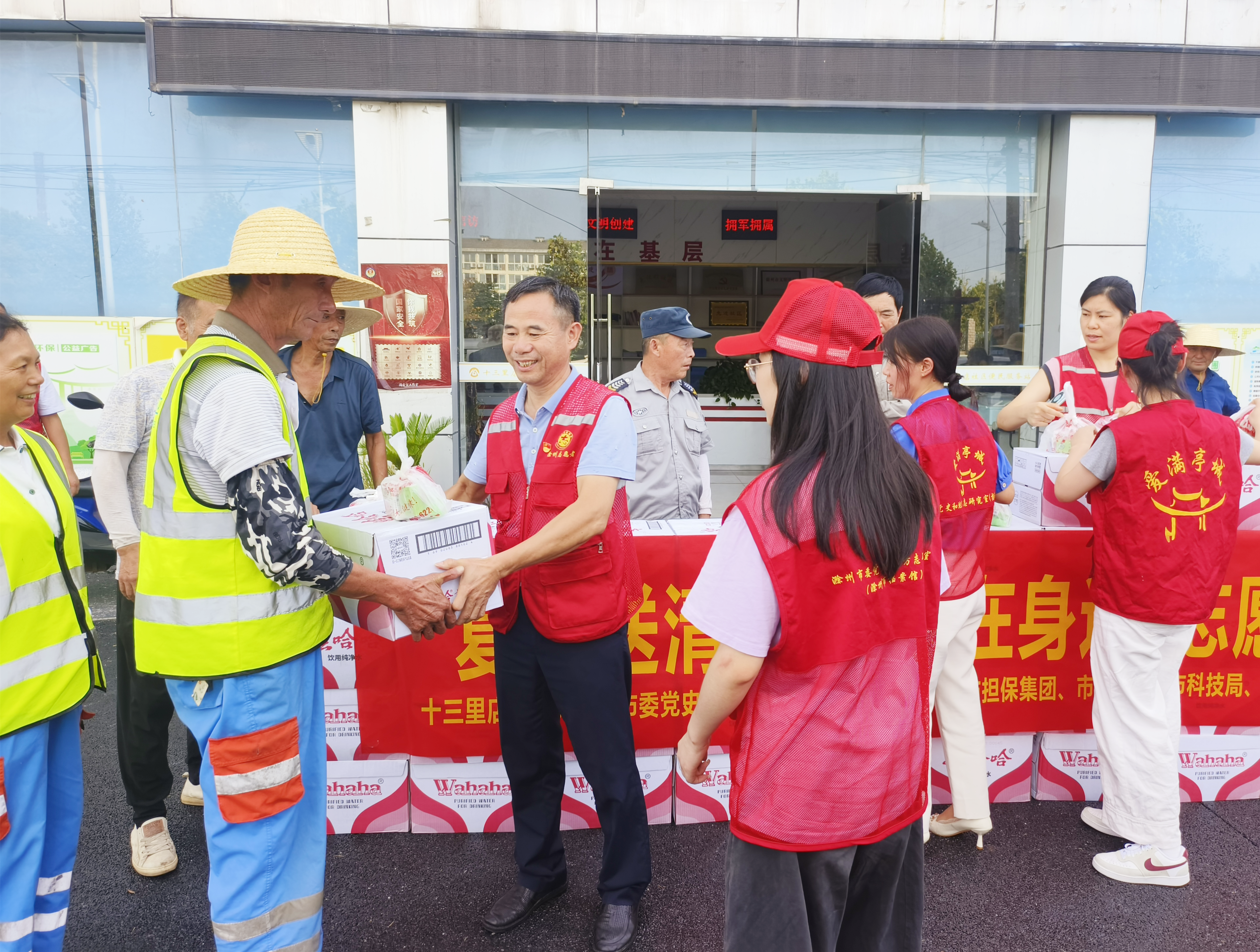 入夏以來,氣溫一直居高不下,烈日炎炎,持續(xù)高溫“烤”驗(yàn)著奮戰(zhàn)在一線的環(huán)衛(wèi)工人們,為了深入貫徹落實(shí)黨的群眾路線,更好地為居民群眾辦實(shí)事、獻(xiàn)愛心,市擔(dān)保集團(tuán)下屬兩個(gè)黨支部與十三里店社區(qū)等黨組織聯(lián)合開展“夏日送清涼,關(guān)愛在身邊”黨員志愿服務(wù)活動(dòng),為社區(qū)不辭辛勞、兢兢業(yè)業(yè)工作的一線環(huán)衛(wèi)工人們送去關(guān)心關(guān)愛和一縷夏日的清涼。