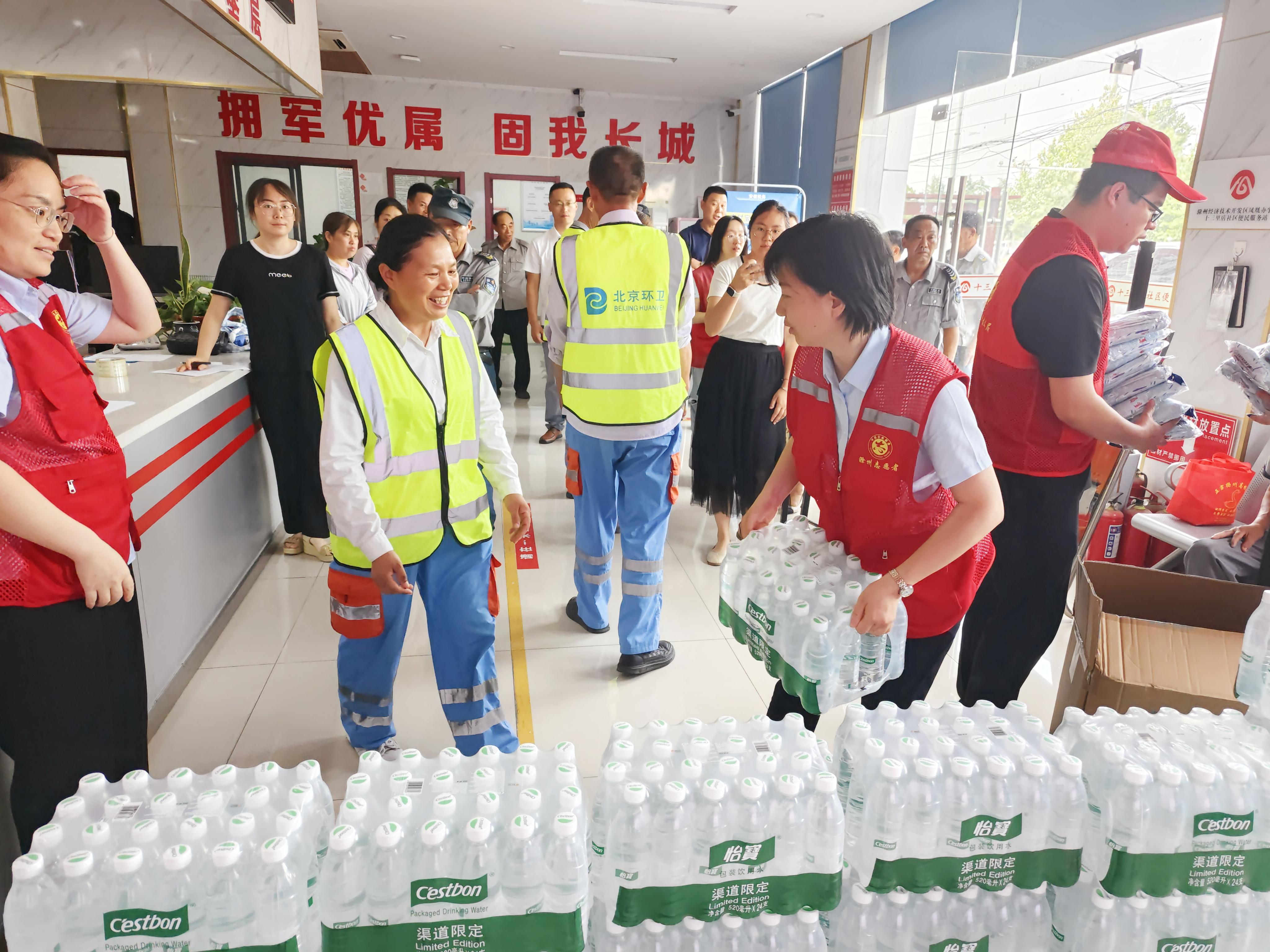 入夏以來,持續(xù)高溫炙烤大地,給戶外作業(yè)的環(huán)衛(wèi)工人帶來了嚴峻“烤”驗。為給炎炎夏日里高溫下作業(yè)的社區(qū)環(huán)衛(wèi)工人們送去一絲清涼和關愛,7月16日,市擔保集團三個黨支部聯(lián)合共建單位的黨組織,共同開展“清涼送一線 關愛在身邊”黨員志愿服務活動,為共建的十三里店社區(qū)全體環(huán)衛(wèi)工人送去黨組織的關懷與問候。