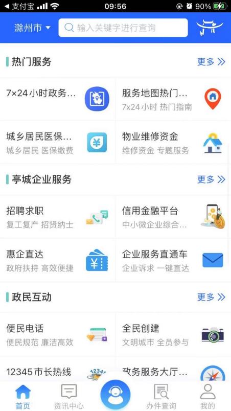 2.打開APP進入首頁,左上角檢查城市定位是否為【滁州市】;