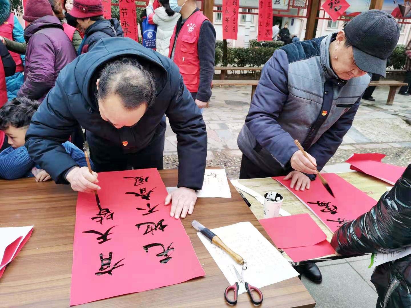 志愿者現(xiàn)場(chǎng)為居民寫春聯(lián)