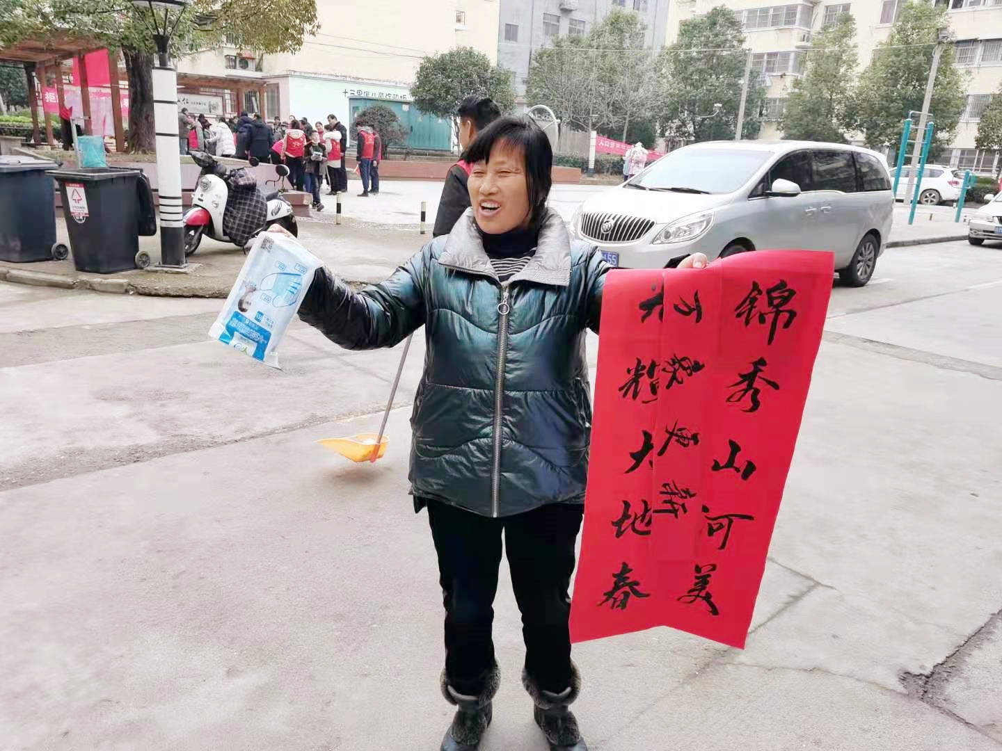 居民領(lǐng)取春聯(lián)和防疫口罩后的愉悅心情