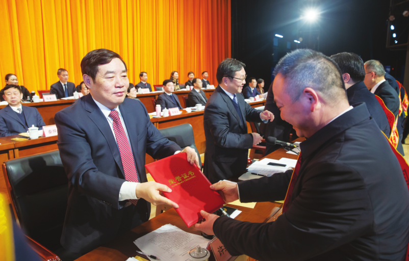 市領(lǐng)導(dǎo)為2021年全市新獲評省級以上高層次人才代表頒發(fā)榮譽證書。