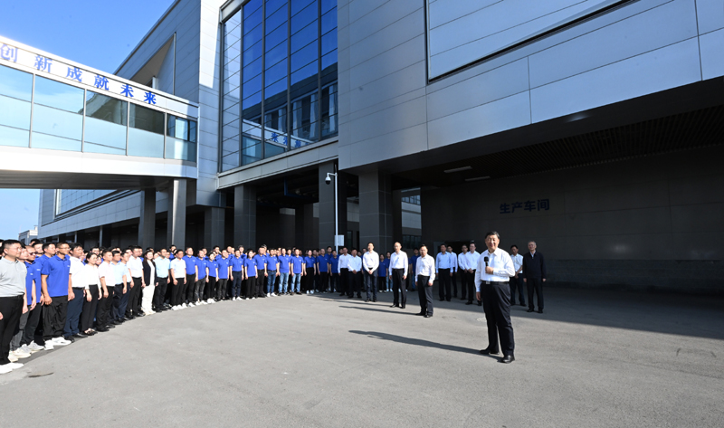 在車間外廣場(chǎng)上,習(xí)近平同企業(yè)員工們親切交流。習(xí)近平強(qiáng)調(diào),我國(guó)是制造大國(guó),要努力提高自主創(chuàng)新能力,加快向制造強(qiáng)國(guó)轉(zhuǎn)變。中國(guó)要強(qiáng)大,各領(lǐng)域各方面都要強(qiáng)起來(lái)。全面建設(shè)社會(huì)主義現(xiàn)代化國(guó)家,實(shí)現(xiàn)中華民族偉大復(fù)興,前途是光明的,道路是曲折的,還會(huì)面臨許多激流險(xiǎn)灘,要勇于迎接各種風(fēng)險(xiǎn)挑戰(zhàn)。天上不會(huì)掉餡餅,一切成就都要通過我們共同拼搏來(lái)取得。大家都是“80后”、“90后”,正當(dāng)其時(shí),要有事業(yè)心、責(zé)任感,努力奮斗,到本世紀(jì)中葉全面建成社會(huì)主義現(xiàn)代化強(qiáng)國(guó)之時(shí),大家一定會(huì)為“強(qiáng)國(guó)圓夢(mèng)、功成有我”而感到自豪。
