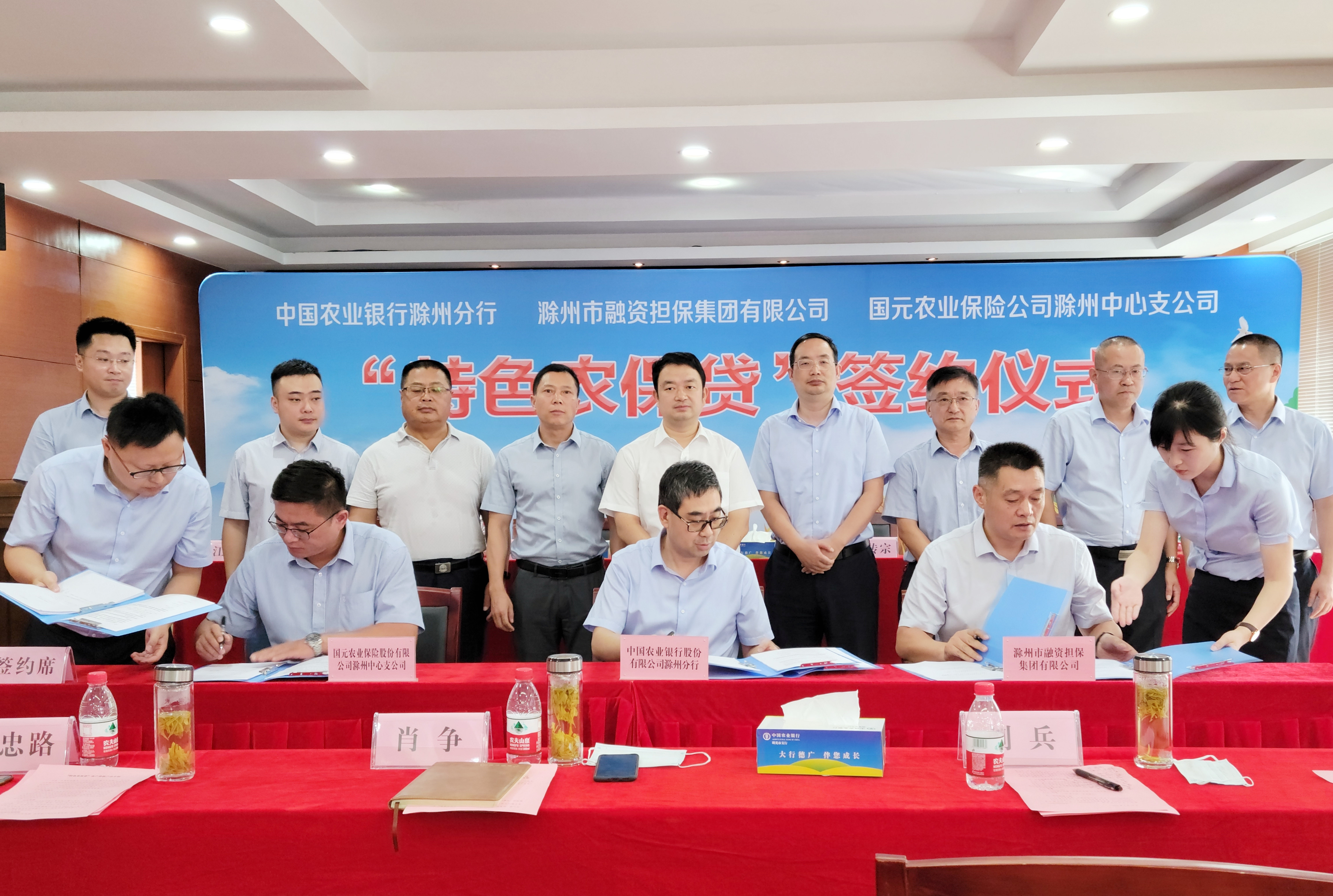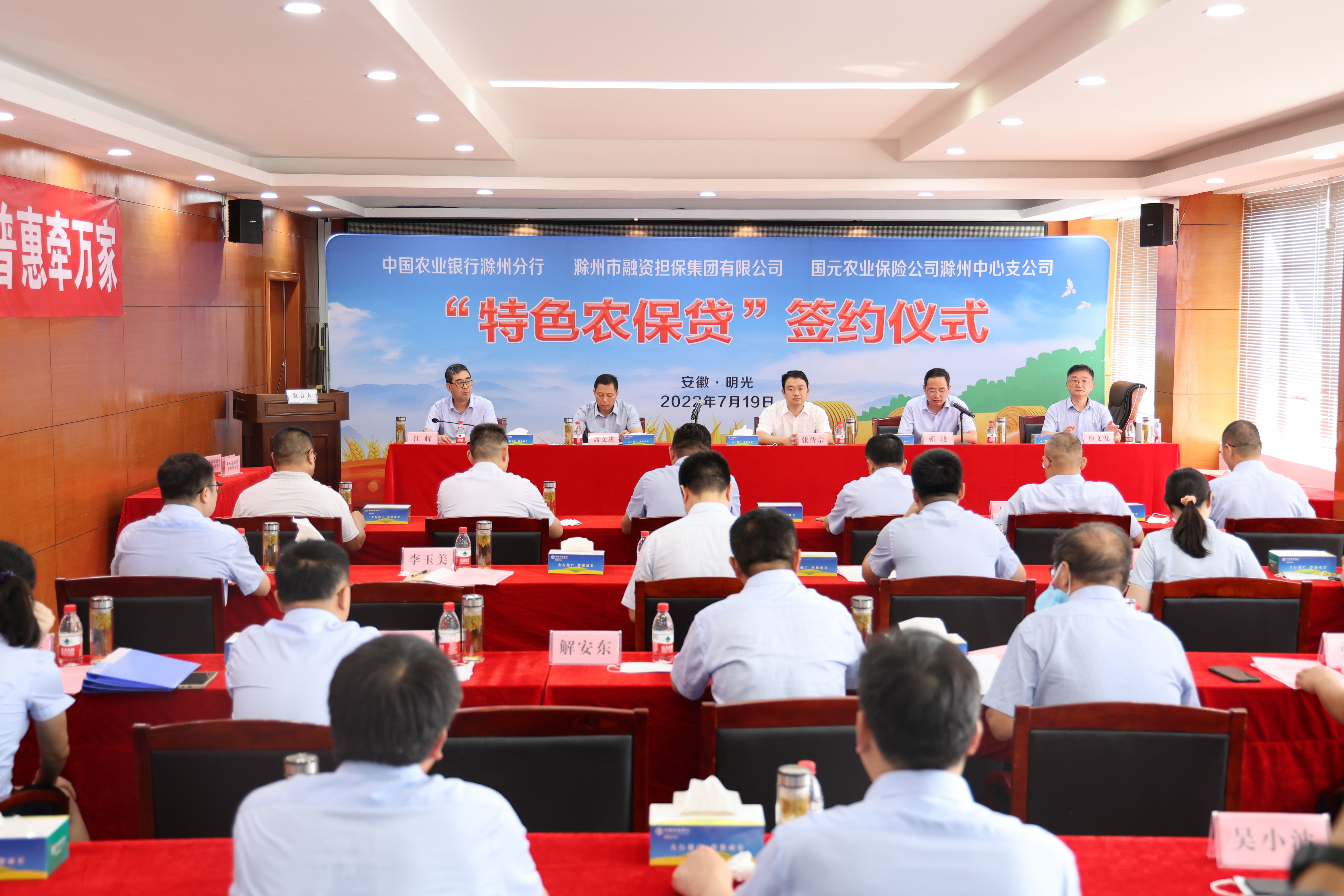 為進一步更好地服務“三農(nóng)”,助力滁州鄉(xiāng)村振興,7月19日,市擔保集團、農(nóng)行滁州分行及國元農(nóng)保滁州中支在明光市共同舉辦“特色農(nóng)保貸”簽約儀式。明光市委副書記、市長張傳宗,滁州市擔保集團黨委書記、董事長、總經(jīng)理高文進,農(nóng)行滁州分行黨委書記、行長靳琎,國元農(nóng)保滁州中支黨支部書記傅文發(fā)等有關(guān)領(lǐng)導及部分農(nóng)戶代表出席簽約儀式。