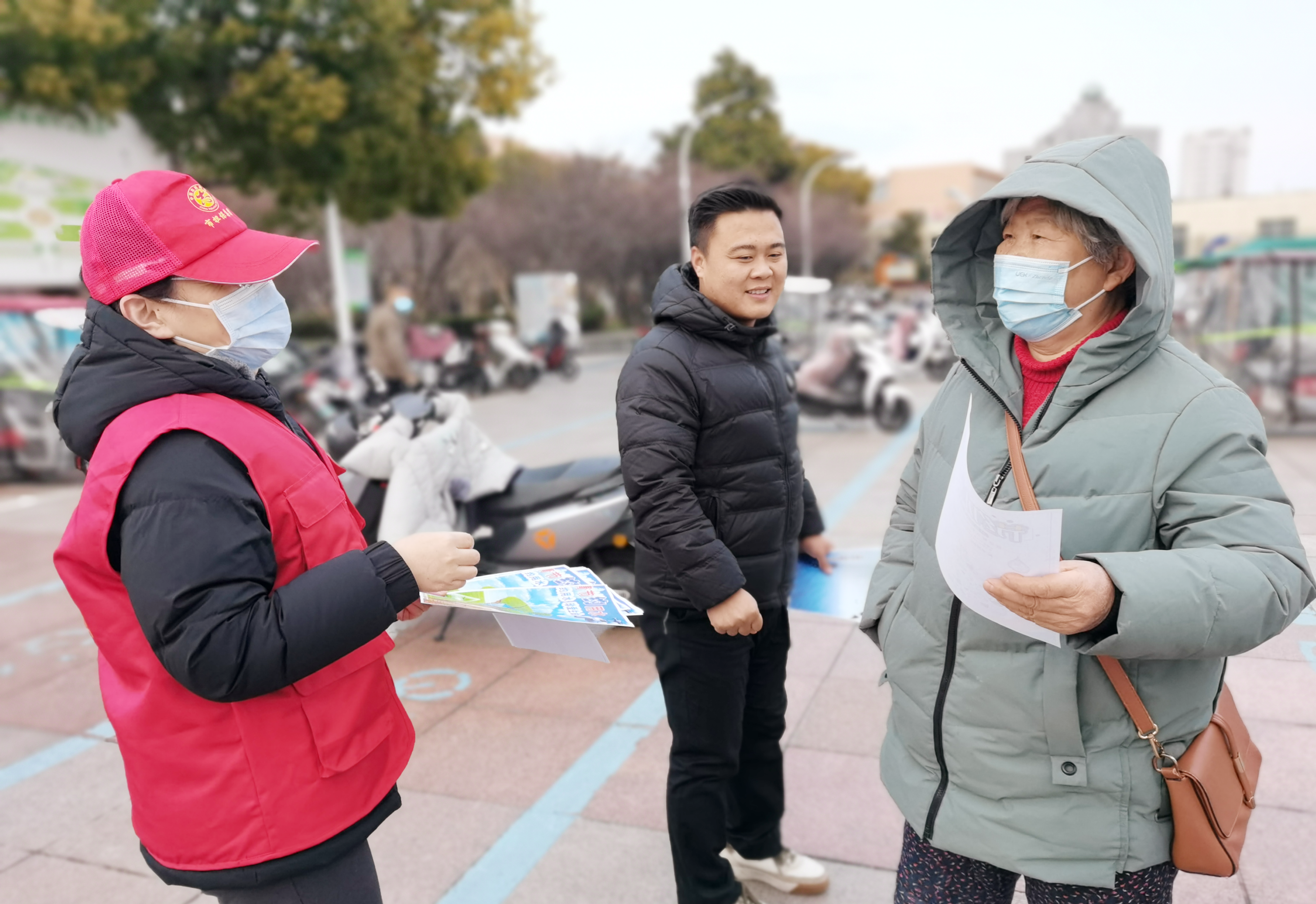 志愿者向市民介紹生活中的節(jié)水技能和方法